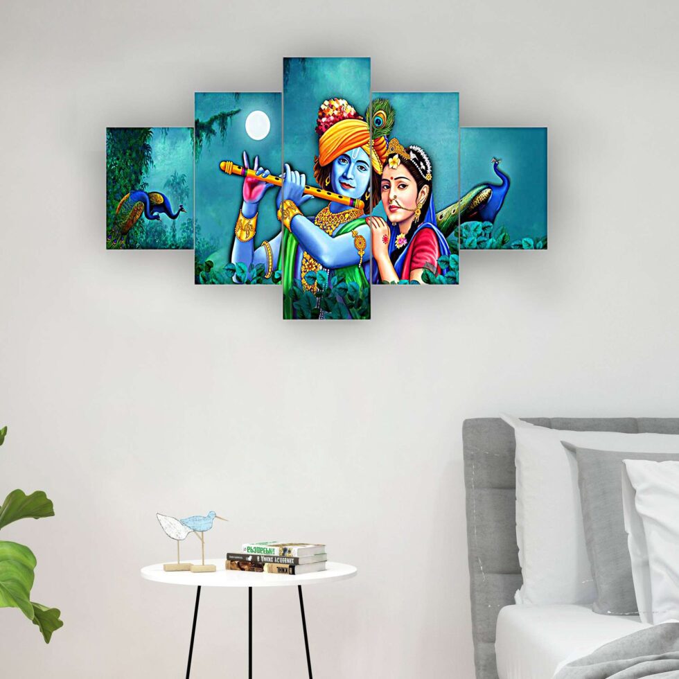 Radhe Krishna Set of Five 3D Framed Paintings for Wall Decoration – Ideal for Home, Living Room, and Bedroom (75 x 43 CM)